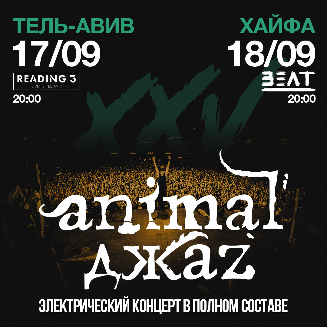 Настройся на максимальный драйв: джинсы порезаны, лето, три полоски на кедах и вот — впервые в истории Израиля, ANIMAL ДЖАZ собираются выжечь сцену Тель-Авива и Хайфы в полном составе!